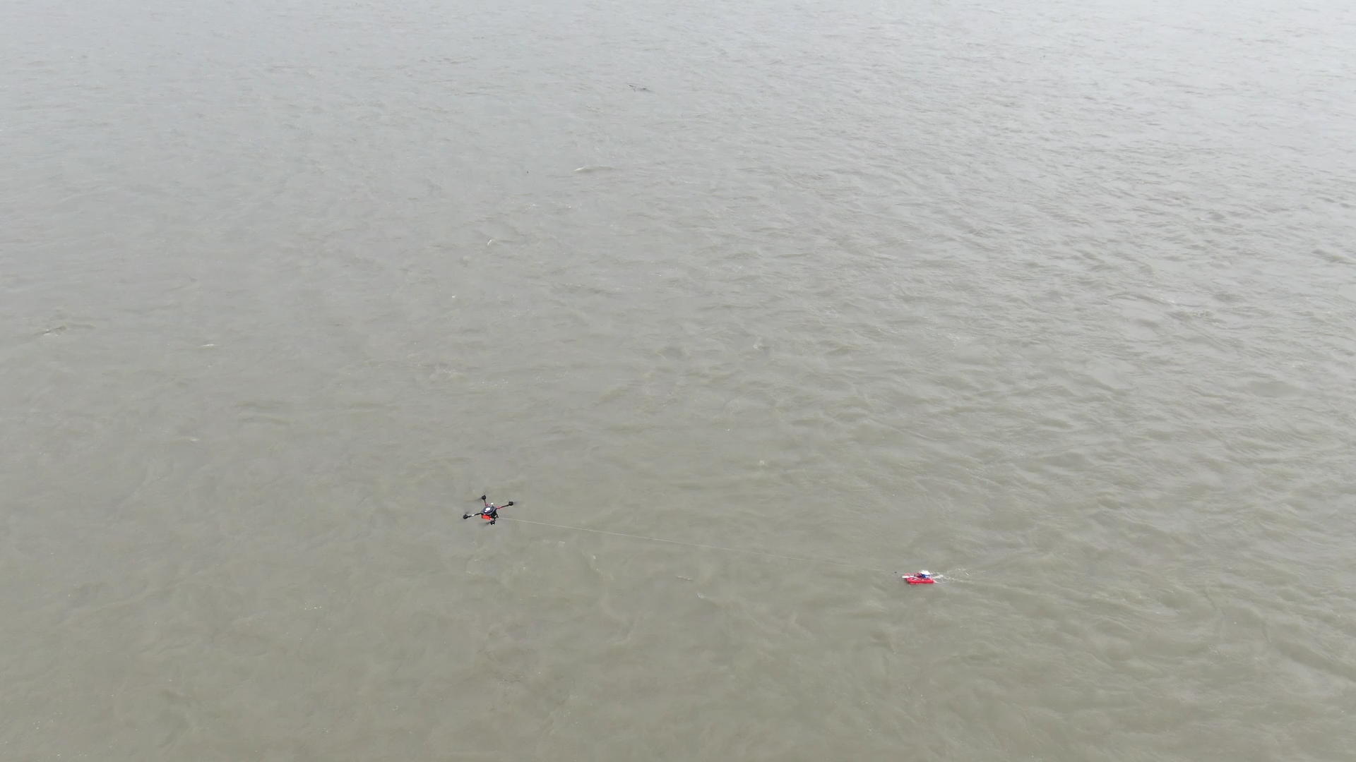 无人机拖拽三体船演练
