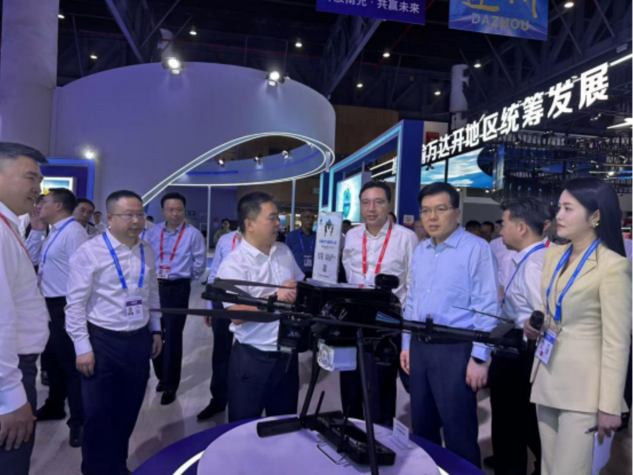 展会期间,四川省人民政府左永祥副省长在南充市委张冬云书记一行人的陪同下莅临我司展位,进行现场考察与交流,共同见证了我司在低空经济领域的最新成果--填补国内空白的“百KG级重载无人机”。公司总经理何进向各位领导汇报了企业发展沿革、近况、技术研发体系及市场战略布局,对展示的鱼鹰水质自动采样无人机、大气检测无人机和多功能重载无人机等产品在环境监测、物资运输、消防灭火、应急救援、工程材料吊运领域的应用进行介绍;其中,纯电动力多功能重载无人机实现载重与续航双突破,并搭载智能控制系统,可在复杂环境下完成运输吊运、应急救援等任务,市场前景广阔。