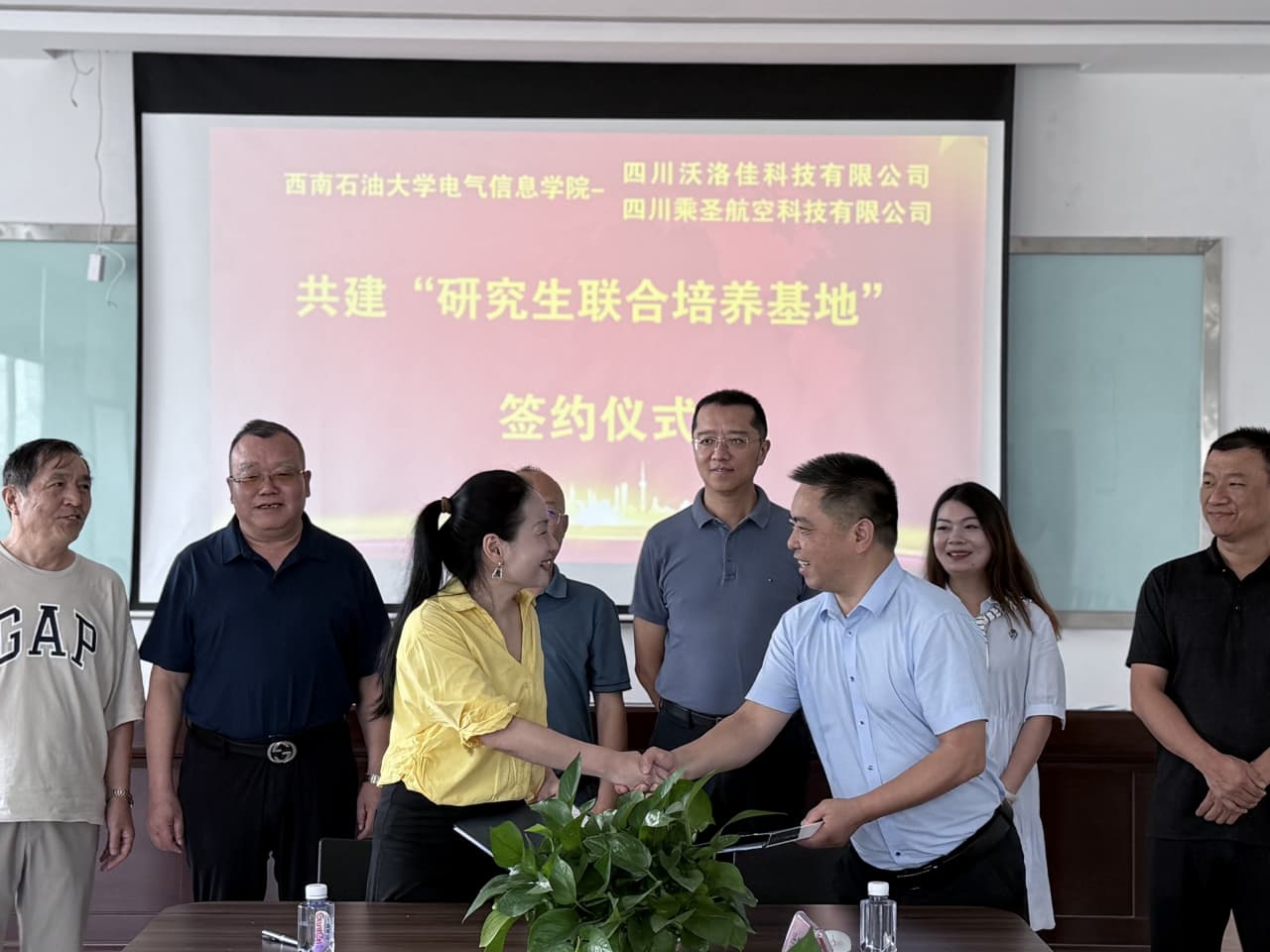金秋送爽,硕果可期。9月7日上午,西南石油大学电气信息学院与四川沃洛佳科技有限公司、四川乘圣航空科技有限公司在乘圣航空科技公司内隆重举行“研究生联合培养基地”签约暨授牌仪式。校企三方代表齐聚一堂,共同见证了这一推动产学研深度融合的重要时刻。