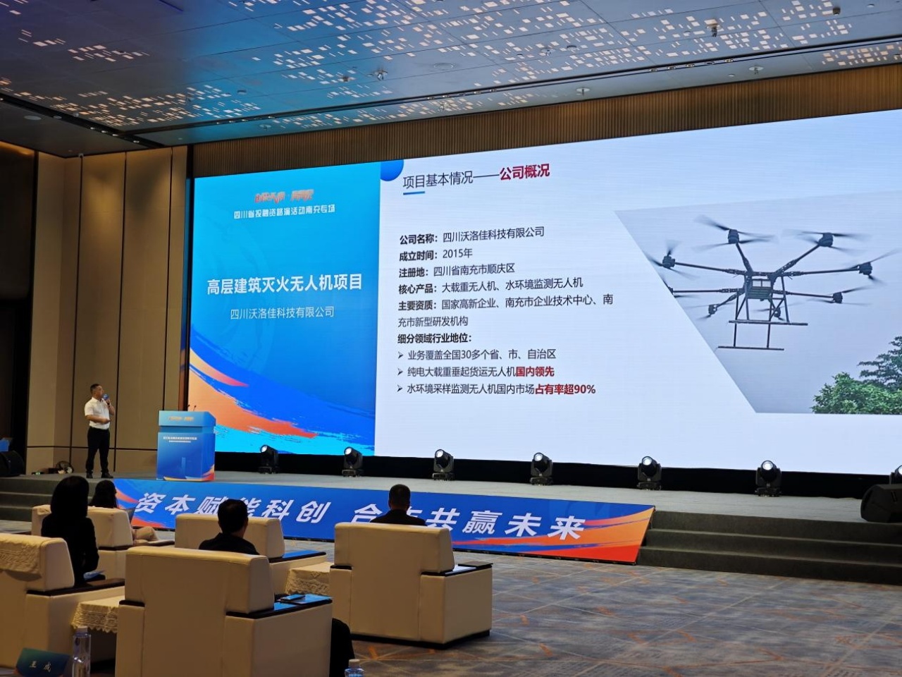 2025 年 10 月 17 日上午,“创投天府・周周见” 四川省投融资路演活动南充专场暨南蓉科创投资联盟启动仪式在成都兴隆湖成功举行。本次活动由四川省科学技术厅等单位主办,旨在推动科技项目与投融资机构精准对接,为科创企业搭建资本桥梁。四川沃洛佳科技有限公司作为南充低空经济领域的代表性企业,携高层建筑灭火无人机项目精彩亮相,其 “大载重无人机 + AI 智能平台” 的创新组合,为长期困扰行业的高层灭火难题提供了方便快捷的解决方案,凭借鲜明的技术优势与广阔的应用前景,迅速成为现场资本与行业关注的焦点。
